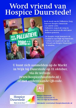 Vriend worden kan ook Behalve door vrijwilliger te worden – mensen zijn altijd nodig – kan de hospice ook op andere manieren ondersteund worden. “Waardering is belangrijk, en dat kan door vriendschap te tonen. Hetzij met een donatie of door je aan te melden voor de nieuwsbrief. Aandacht en waardering doet een mens goed,” besluit Mia.